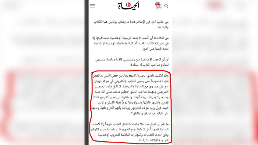 ’’الحياة #السعودية’’ تنشر مقالا ينتقد المدافعين عن المملكة ويصفهم بـ ’’الذباب الإلكتروني’’