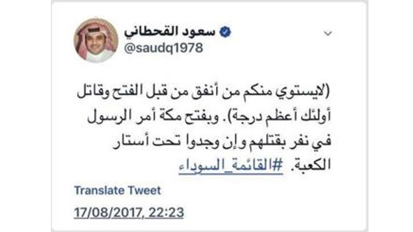 #سعود_القحطاني يحذف تغريدة يهدد النشطاء بالقتل
