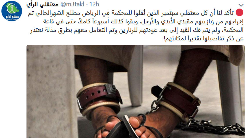مصادر حقوقية: معتقلو الرأي بـ #السعودية يتركون مكبلين لأيام متتالية