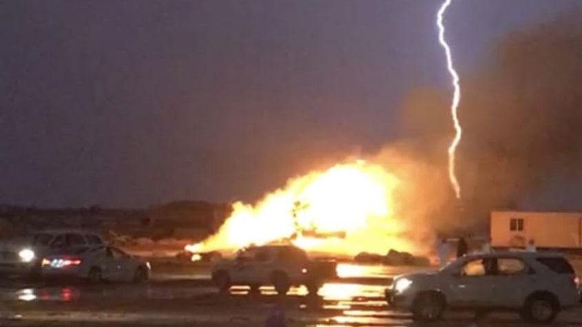 صاعقة تحرق شاحنة أعلاف على طريق #الطائف ـ #الرياض