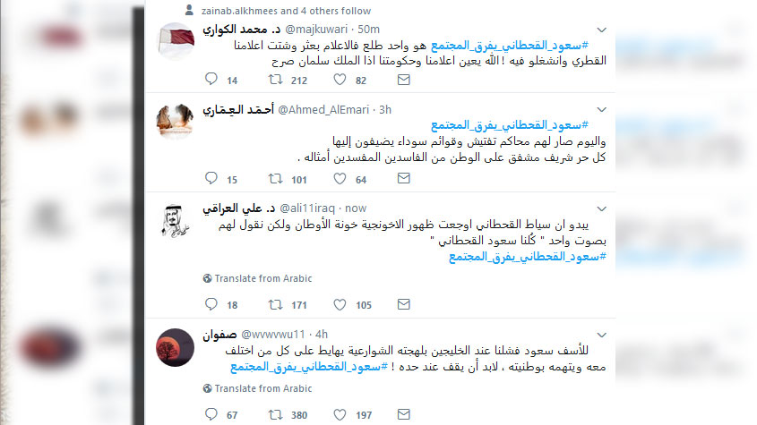 وسم ’’ #سعود_القحطاني_يفرق_المجتمع’’ يحتل المرتبة الخامسة في ’’تويتر’’ بـ #المملكة