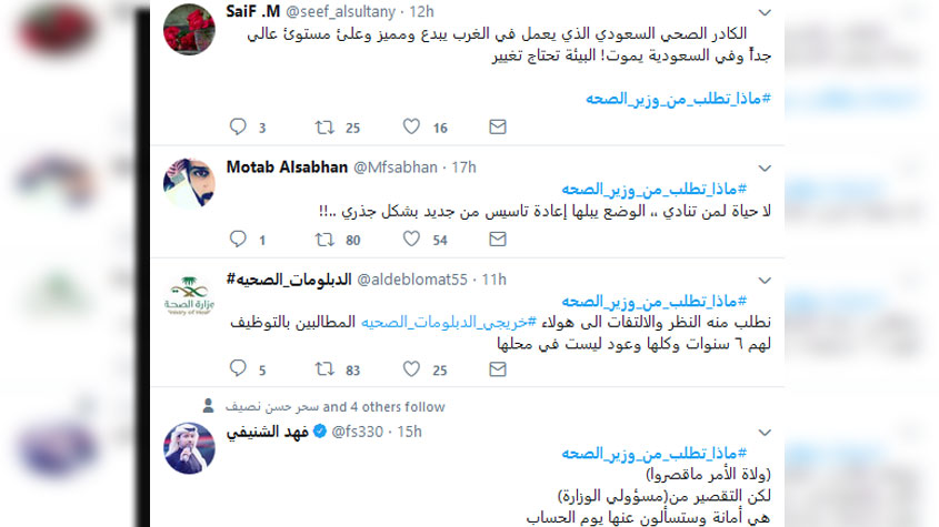 مواطنون يطلقون وسم #ماذا_تطلب_من_وزير_الصحة ويحتل الترند في #تويتر