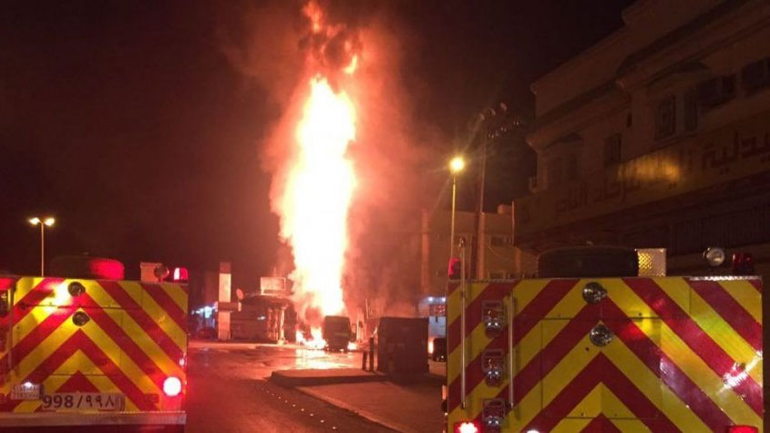 إصابة 4 أشخاص وإخلاء 25 آخرين نتيجة احتراق ناقلة وقود ب #نجران