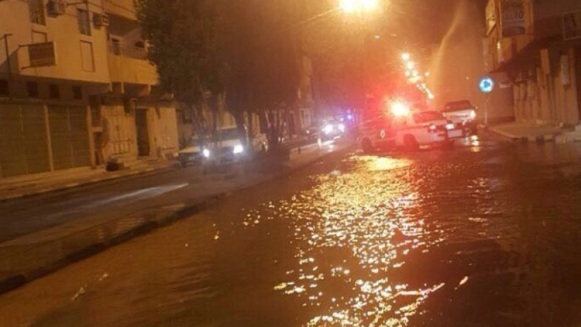 انفجار خط للمياه يغرق شارع الملك فيصل بـ #المجمعة
