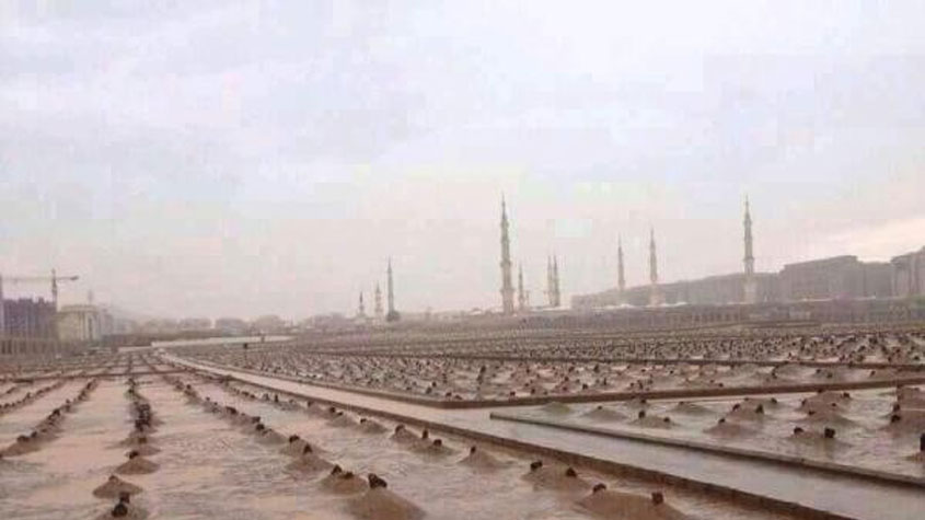 احتجاز ٥ مركبات وسقوط هناجر وأشجار ومظلات إثر أمطار #المدينة