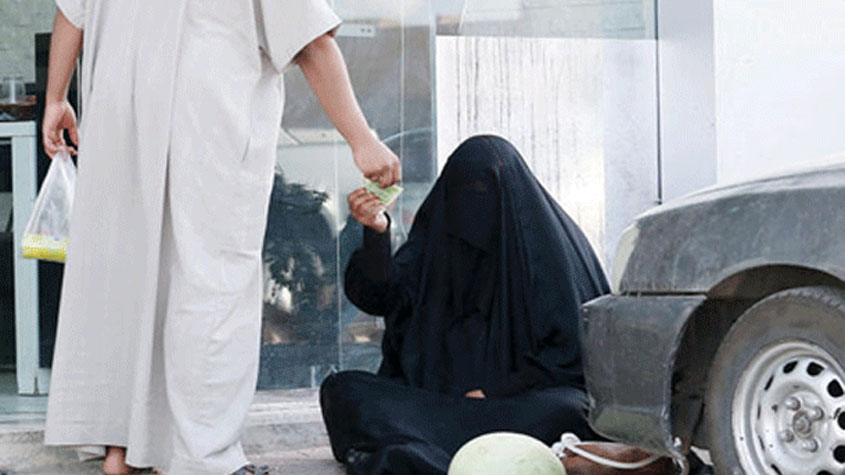 متسول يتنكر بزي نسائي أمام أحد الجوامع بـ #تبوك ويهرب بعد اكتشاف أمره