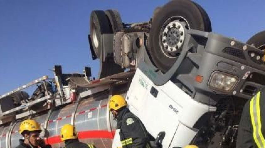 انقلاب ناقلة للبنزين ووفاة سائقها في #تبوك
