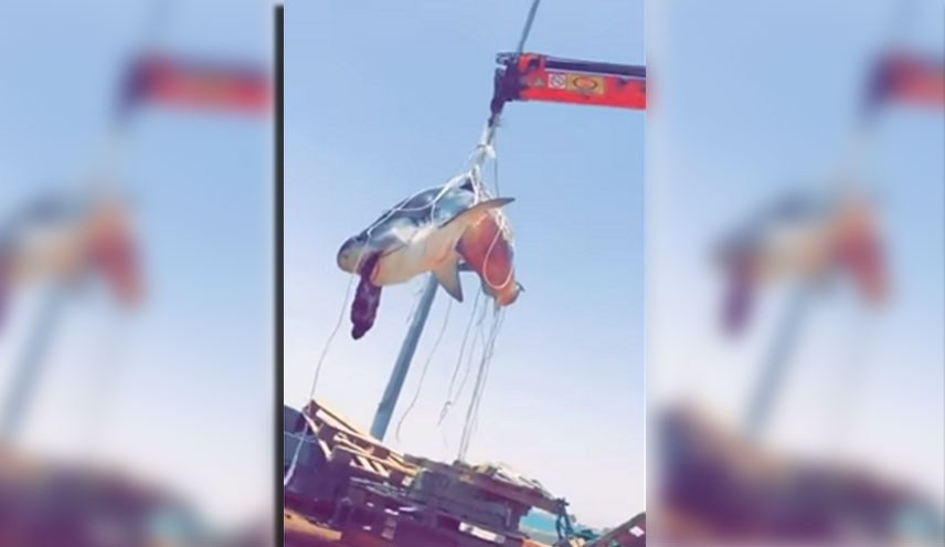 بالفيديو: سعودي يصطاد “سمكة قرش” ويستعين بـ “ونش” لنقلها في #المدينة_المنورة