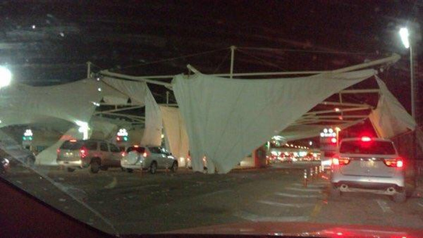عاصفة هوائية تسبب في سقوط مظلات #جسر_الملك_فهد