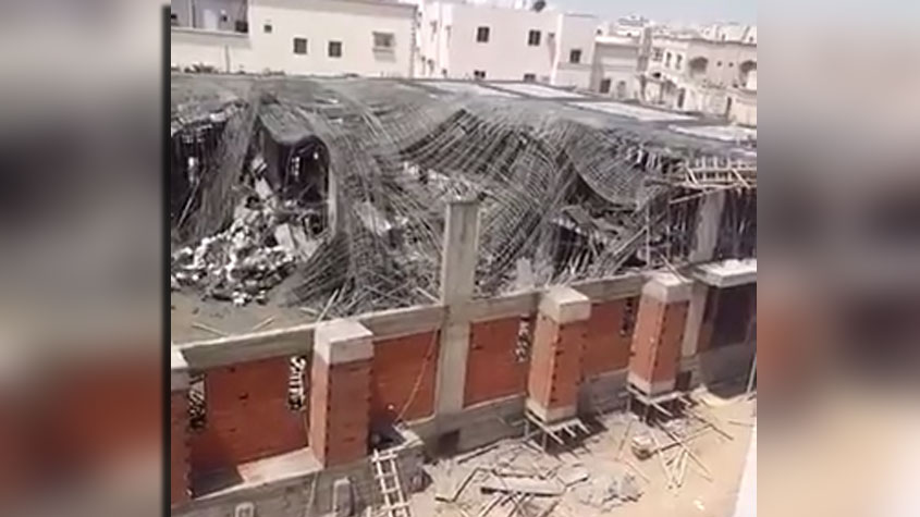 بالفيديو: سقوط سقف مسجد تحت الإنشاء في #جدة