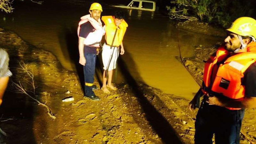 مدني #المدينة: ينقذ مواطنين احتجزوا بمجرى سيول منقولة