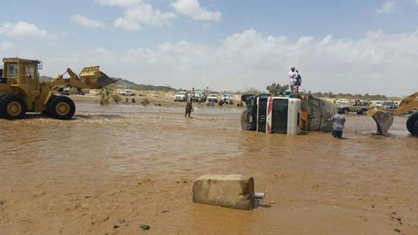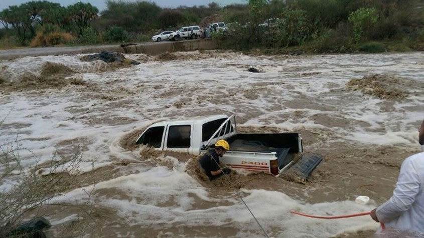#بيشة : سيول تجرف السيارات والدفاع المدني يواصل الإنقاذ