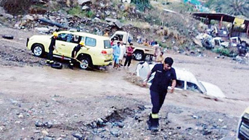أمطار وسيول #جازان تجرف المركبات.. وتؤدي لإصابة 3 من أفراد الدفاع المدني